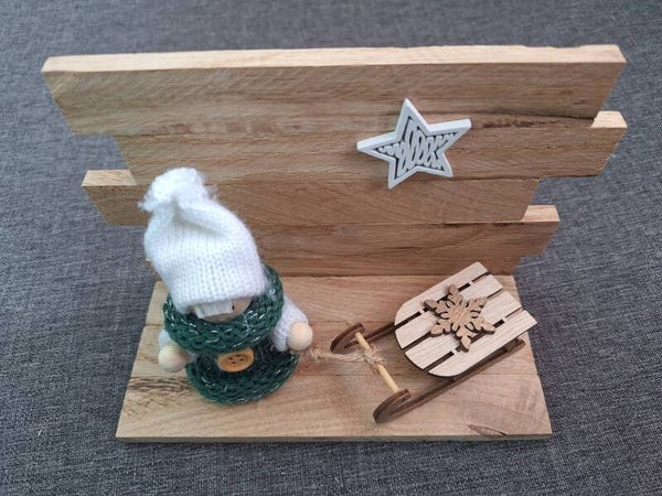 Aufsteller mit Wichtel, Schlitten und Stern