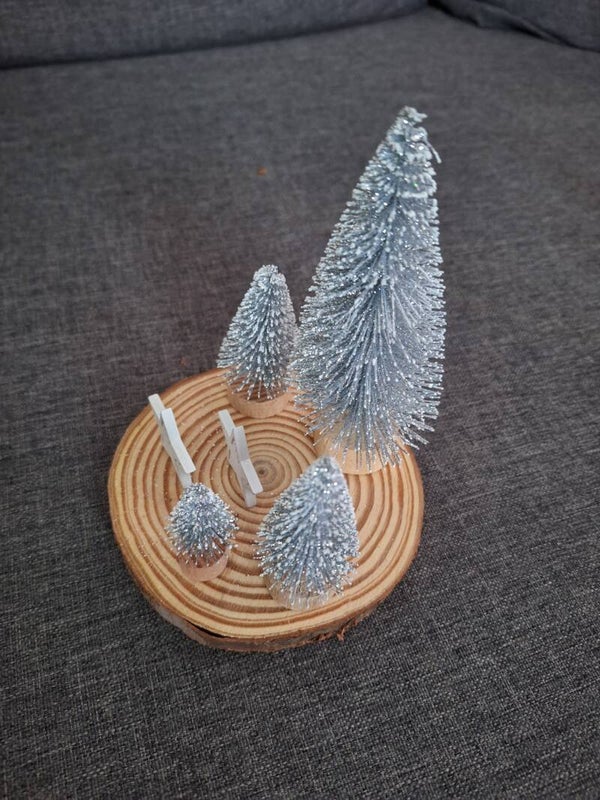 Holzuntersetzer mit silbernen Tannen und Sternen